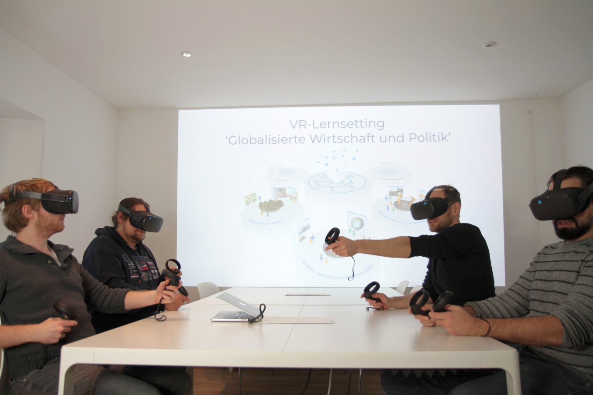 Da das aber nicht nicht immer und zum Beispiel in der Großstadt flächendeckend kaum möglich sein wird, setzen hier digitale Konzepte an, um den Schülern die Welt außerhalb des Klassenzimmers auch so plastisch wie möglich nahezubringen. Die Reise in die Lehreinheit zum Thema „Globale Wirtschaftskreisläufe“ beginnt im Hamburger Hafen – allerdings ohne aufwendigen und teuren Schulausflug, sondern virtuell, per Virtual-Reality-Brille: Die Schüler sehen riesige Ozeanriesen und Massen an Containern, sie spüren die gewaltige Menge an Gütern, die in einer globalisierten Wirtschaft umgeschlagen werden. Sie betreten einen Container, erkunden die Waren darin, erfahren, wo der Kaffee herkommt, wie die Kostenstrukturen sind, wer wieviel verdient und anderes mehr.