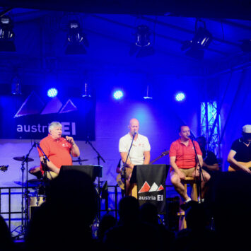 Denn auch die Spitznamen der drei „Austria EI“-Sänger Sänger Schorsch (Irmer) – Toaster – Schorsch (Kleesattel) ergeben dasselbe Anagramm wie bei der berühmten Austriapop-Formation mit ihren herrlich-nachdenklich-schnulzigen Liedern – wie dem „Großvater“, den der Toaster schon 1999 im Weinhäusl mit dem Duo „Zwoarerloa“ erstmals gesungen und sich damals den inoffiziellen Titel des „Weinhäusl-Königs“ gesichert hatte. Daraus ist längst viel mehr geworden: „Austria EI“ – eine neunköpfige Formation, die schon deshalb aus der durchaus beachtlichen Zahl an Austropop-Coverbands hervorsticht. Denn hier geht es nicht um Rendite, die geteilt werden müsste, sondern pure Freude am gemeinsamen Auftreten und Musikmachen – und natürlich jenem zeitlosen Liedgut „made in Austria“.