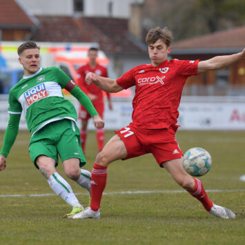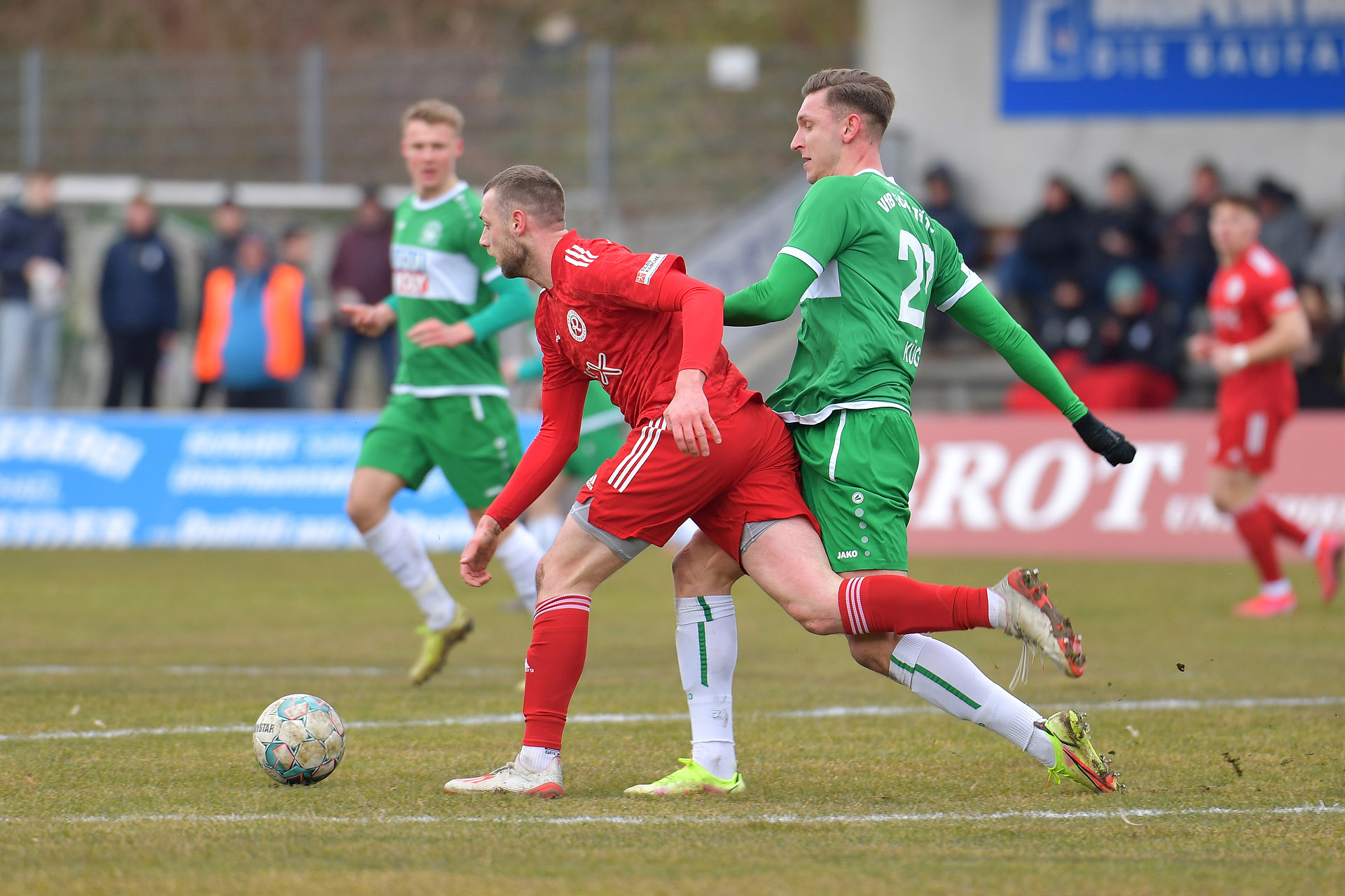 Manches war neu in diesem ersten Heimspiel für den VfB in diesem Jahr, der aufgrund zahlreicher Ausfälle (wir berichteten) auf mehrere Stammkräfte verzichten musste. Und so hatte VfB-Trainer Markus Mattes erneut Luca Oehler auf die linke Defensivseite und Sebastian Graßl ins Mittelfeld beordert. Defensiv funktionierte das erneut gut, offensiv aber tat man sich wie schon häufiger in dieser Saison schwer gegen das Tabellenschlusslicht, das in der Anfangsphase immer wieder über den aus aus Unterhaching gekommenen Winterneuzugang Julien Richter antrieb und spielerisch auf dem nicht ganz einfach zu bespielenden Platz in der ersten Hälfte mehr überzeugte.