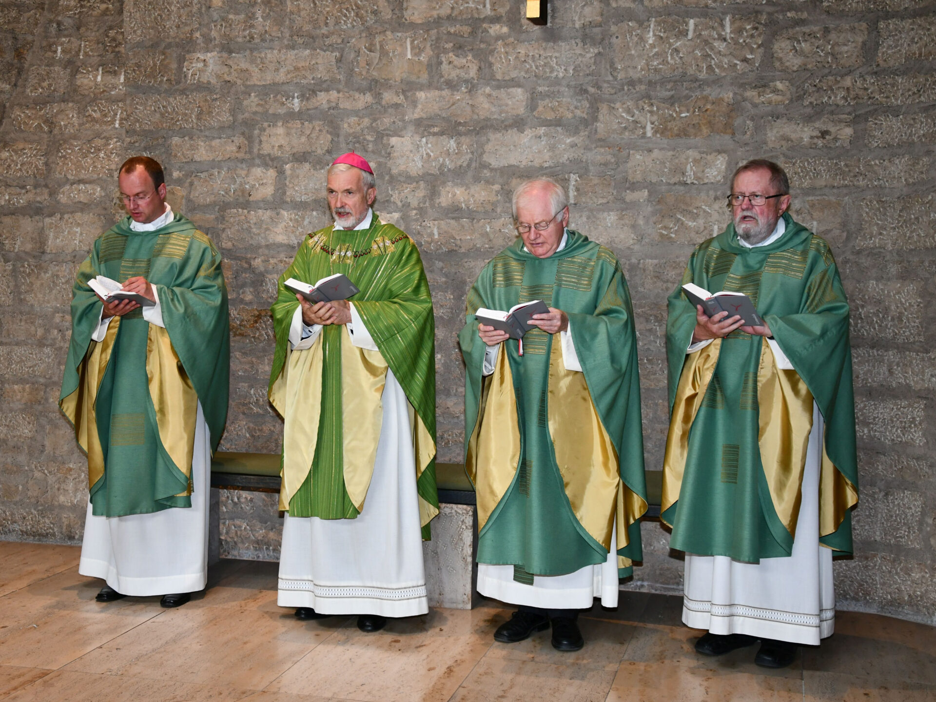 Den Festgottesdienst hielten Regens Domkapitular Michael Wohner, Bischof Gregor Maria Hanke, Caritaspräses Dompropst Alfred Rottler und Domkapitular Paul Schmidt (von links). Foto: Peter Esser/pde