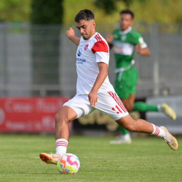 Es war kein besonders schönes oder packendes Spiel in der Anfangsphase. Die Gäste aus Nürnberg taten mehr für’s Spiel, der VfB lauerte auf Pressingsituationen und Ballverluste, Torschancen blieben zunächst Mangelware. Erste Annäherungen gab es nach einer Viertelstunde, als Club-Angreifer Enrique Katsianas-Sanchez sich vor dem Strafraum den Ball auf links legte, aber drüber zielte (16.). Eine Minute später war es der aufgerückte Club-Kapitän Fabian Menig, der einen aufspringenden Querschläger aus gut 20 Metern volley aus Luft nahm und Junghan erstmals prüfte, der den Ball aber letztlich souverän aus der Ecke fischte.