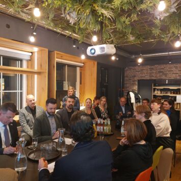 Um moderne transatlantische Beziehungen und die Wiederannäherung nach einer Entfremdung in den letzten Jahren insbesondere unter Ex-Präsident Trump ging es im gespräch mit Journalistikstudenten an der Universität und einem Empfang bei KU-Präsidentin Gabriele Gien. Der Abend klang mit Rehbraten im Schönblick und einem Besuch im Oaktown Office aus, wo die neue Stadtwerke-Leiterin Silvia Dollinger die Pläne für ein Eichstätter Nahwärmenetz erläuterte und wo es im Gespräch mit den Wirtschaftsjunioren auch um Wirtschaftsthemen ging.